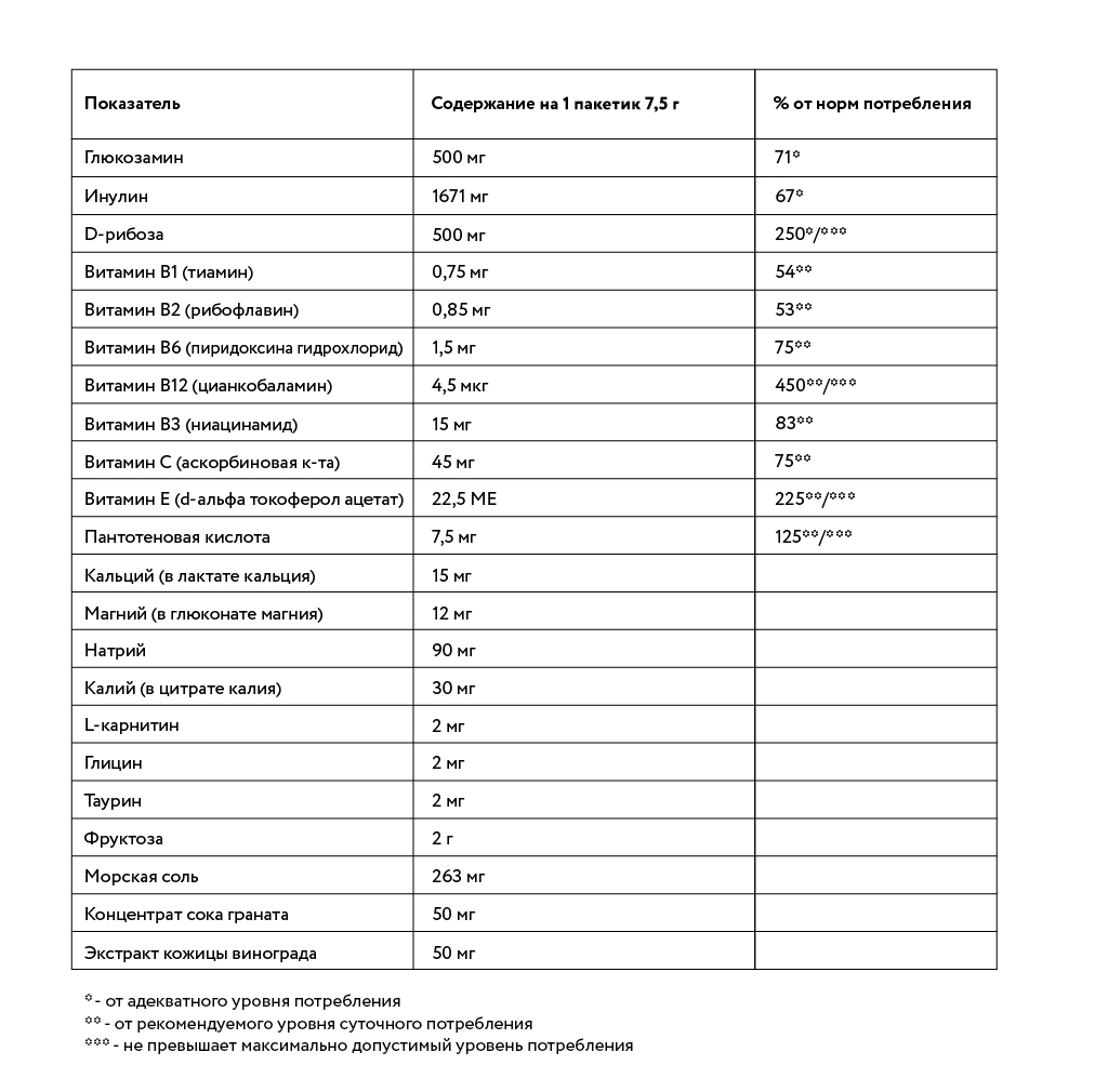 • Обеспечивает восстановление суставов и восстанавливает баланс электролитов в организме после физической нагрузки
